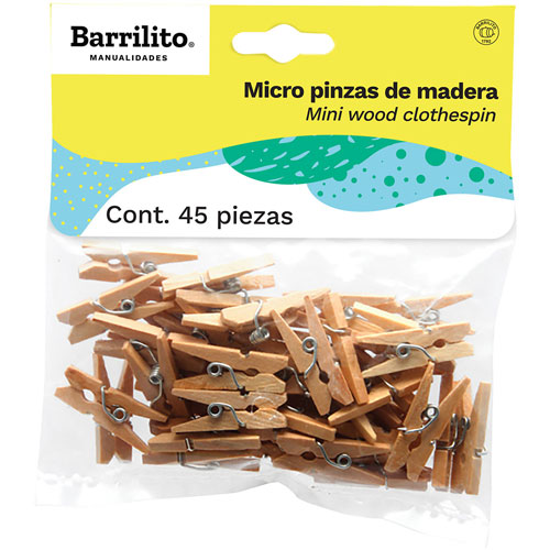 Micro pinza de madera natural Barrilito, 45 piezas